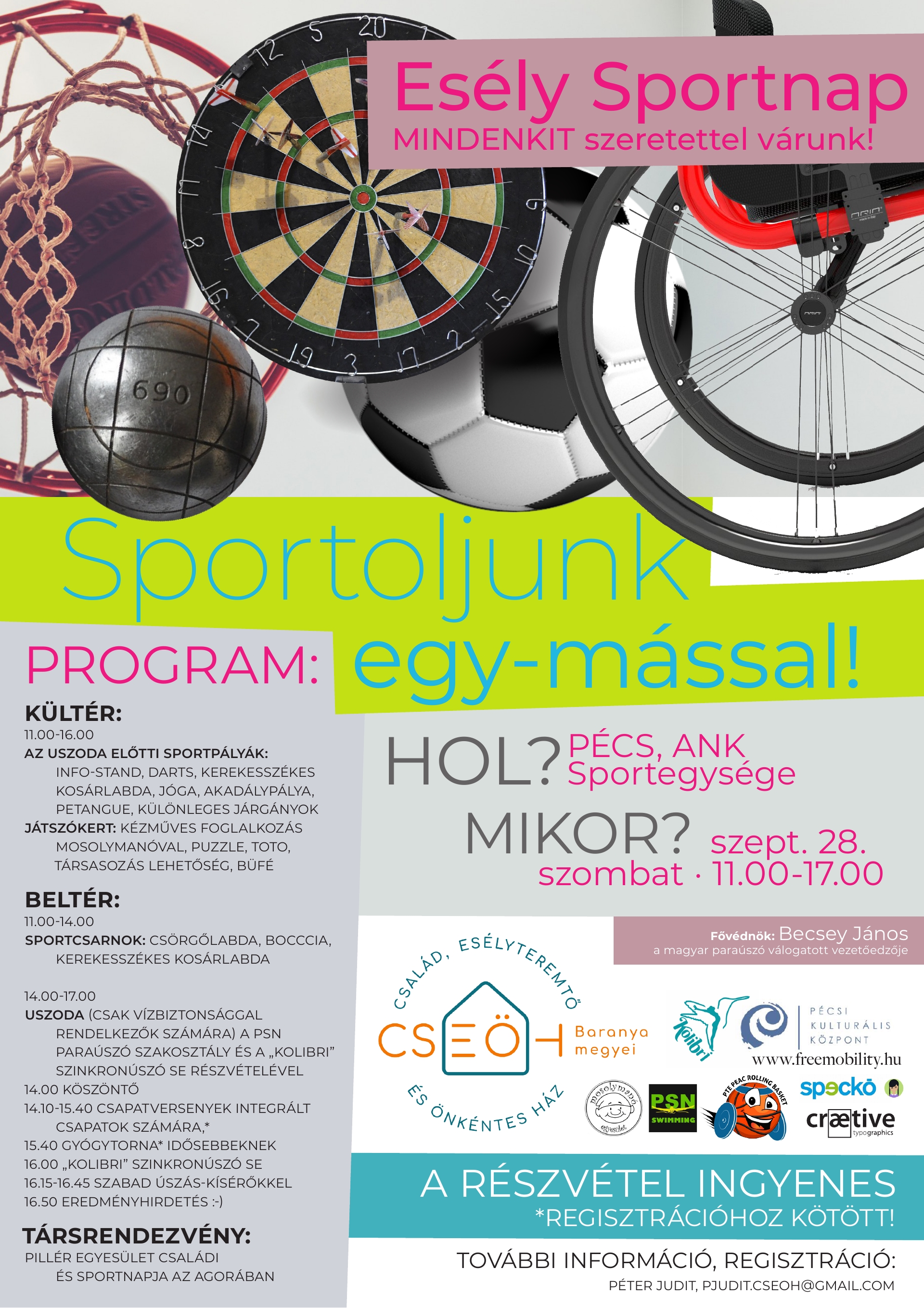 Továbbá, hogy a közös sportolás élményén keresztül lehetőséget teremtsen a találkozásra, a megismerésre, ezáltal az elfogadó hozzáállás erősödésére. A játékos érzékenyítő programelemek is megjelennek a rendezvényen, szélesítve ezzel a program profilját, lehetőséget teremtve arra, hogy fogyatékossággal élő és ép résztvevők közös tevékenységeket folytassanak.